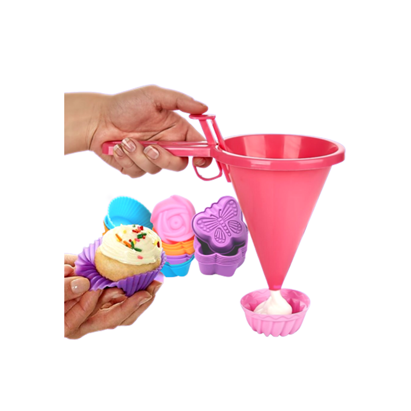 მაფინის სილიკონის ფორმების 12 ცალიანი კომპლექტი და ცომის დისპენსერი UN192